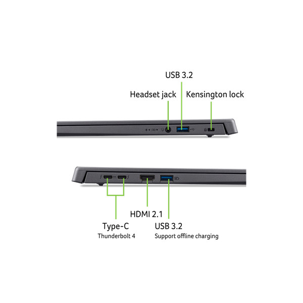 ACER Aspire A16-71M-77CC, 16" WUXGA, Intel Core Ultra 7 155H, 16GB, 1TB SSD, UMA, DOS, acélszürke
