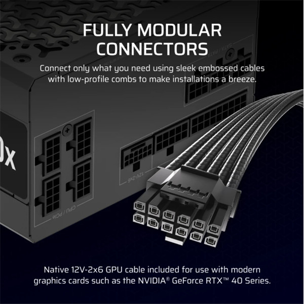 CORSAIR Tápegység Moduláris, RM750x, 750W, ATX 3.1, PCIe 5.1, 14cm, Cybenetics Gold