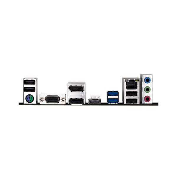 1 x PS/2 keyboard/mouse port 1 x D-Sub port 2 x DisplayPort 1 x HDMI port 2 x USB 3.2 Gen 1 ports 4 x USB 2.0/1.1 ports 1 x RJ-45 port 3 x audio jacks