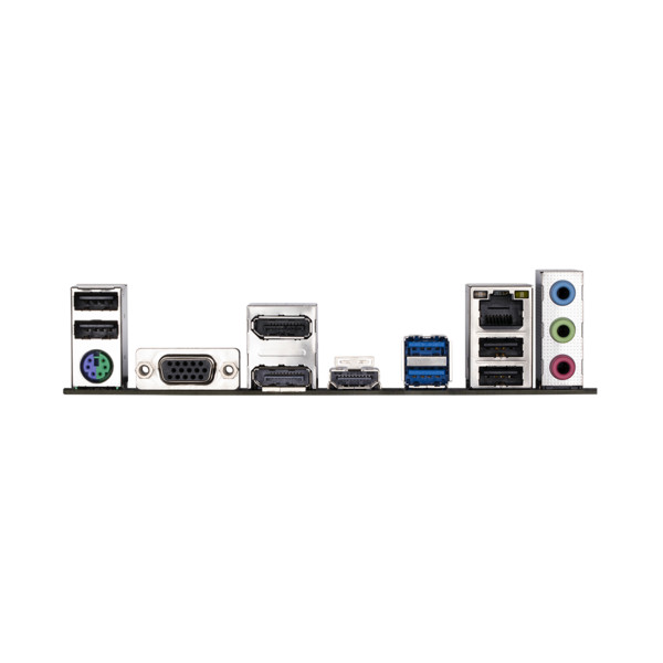 1 x PS/2 keyboard/mouse port1 x D-Sub port2 x DisplayPorts1 x HDMI port2 x USB 3.2 Gen 1 ports4 x USB 2.0/1.1 ports1 x RJ-45 port3 x audio jacks