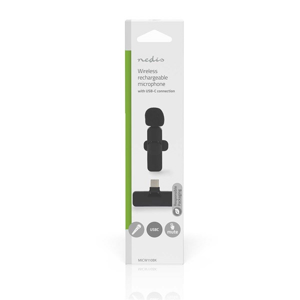 Nedis MICW110BK vezeték nélküli mikrofon, használható Notebook / Okostelefon / Tablet, USB Type-C™
