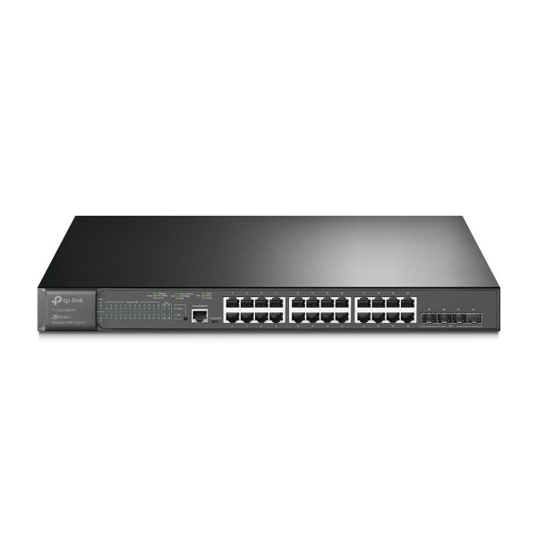 TP-LINK Switch 24x1000Mbps (24xPOE+) + 4x10G SFP+ + 2xkonzol port, Menedzselhető, SG3428XMP
