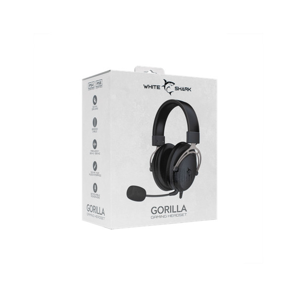 WHITE SHARK GORILLA-B/G, GH-2341-B/G gamer fejhallgató, fekete/ezüst, (3.5 Jack)