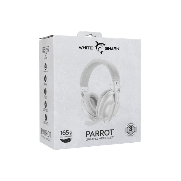 White Shark PARROT-W/G, GH-2440W/G mikrofonos gamer fejhallgató. Kiváló anyagokból, kiváló fejhallgató, fehér/szürke színben! Minden körülmények között tiszta hangzást biztosít. Ergonomikus kerek fülpárnáinak köszönhetően hosszú használat mellett is kényelmes viselet, kizárja a külső háttérzajokat. Hangerőszabályzó a fejhallgatón található. PC, PS4/5, XBOX, MAC kompatibilis!!