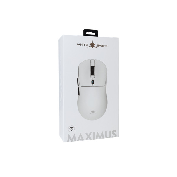 WHITE SHARK PRÉMIUM GM-9010W MAXIMUS-W vezeték nélküli gamer egér, 26.000 dpi, fehér