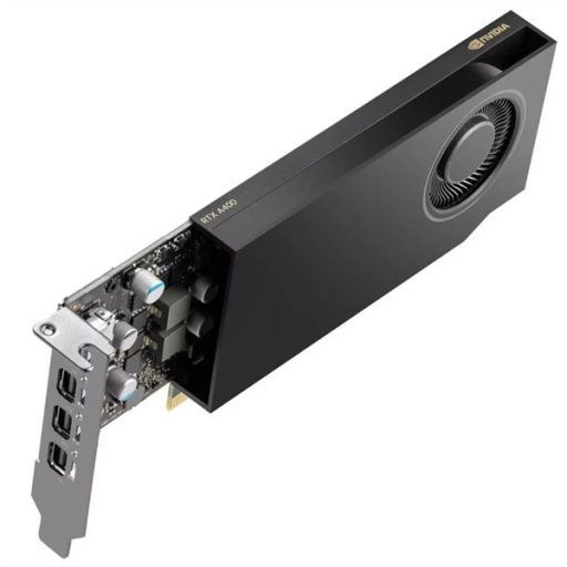 GPU memory 4GB GDDR6Memory interface 64-bitMemory bandwidth 96GB/sNVIDIA Ampere architecture-basedCUDA Cores768NVIDIA third-generation Tensor Cores 24NVIDIA second-generation RT Cores 6Single-precision performance 2.7 TFLOPS2RT Core performance 5.4 TFLOPS2FP16 Tensor performance 21.7 TFLOPS3Peak INT8 Tensor performance 43.3 TOPS4System Interface PCIe 4.0 x85Power consumption Total board power: 50WThermal solution ActiveForm factor 2.7” H x 6.4” L, single slotDisplay connectors 4x Mini DisplayPort 1.4aMax simultaneous displays 4x 4096 x 2160 @ 120 Hz4x 5120 x 2880 @ 60 HzEncode/decode engines 1x encode, 1x decode (+AV1 decode)Graphics APIs DirectX 12, Shader Model 6.6,OpenGL 4.66, Vulkan 1.36Compute APIs CUDA 11.6, OpenCL 3.0, DirectCompute